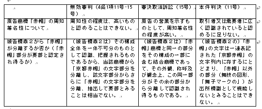 このような判断の違いは、(a)「赤帽」という言葉の識別力(創作性の程度)、並びに(b) 原告が「赤帽」の他に「あかぼう」や「Akabou」の略称を使用している状況で、原告が「赤帽」と略されていると言える否か、という点についての認定の違いに起因しているように思われる。